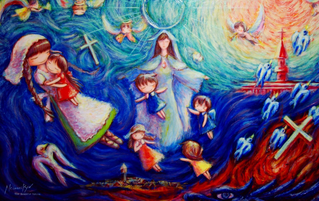 炎の間から、我が子の顔をさすり、涙を手でふいてやる母親の姿が垣間見られます。